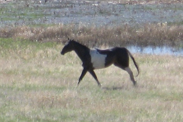 These photos are from about two weeks ago. The mosquitoes are very bad already and the horses were standing in the flood water (so much snow and a beaver dam on the creek). I think the bugs were not as bad in the water as the grass. My horse, brown and white paint on the far right, Went for a roll to get the bugs off. Silly Boy.