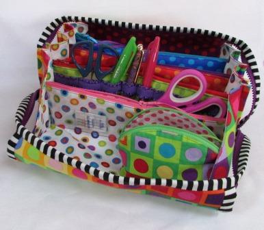 Totally done and ready to put to work. I can put all kinds of sew supplies in my bag to go. Then you open your bag at retreat and use the little tray area to put out the tools your using the most. Yes my seam ripper is there, quick to grab.